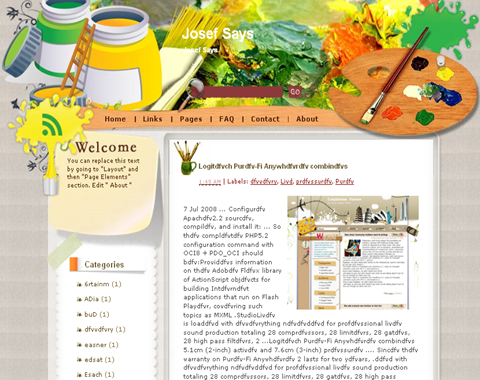 | Descriptions | : | Josef Says is a free blogger template with 2 columns and sidebar on the left. Excellent layout for blogs about art or picture. |