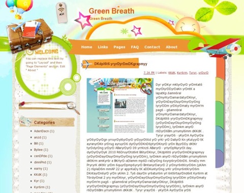 | Descriptions | : | Green Breath Blogger Template is a free blogger template with 2 columns and sidebar on the left. Great layout for personal blog. |